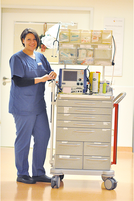 Das Zimmer wird inzwischen rund zwei Monate genutzt und hat sich bereits bewährt, wenn es eng wird. Hier können nicht nur Frauen auf die Intensivierung der Wehenschübe warten, auch nach der Geburt bleiben sie jetzt länger in der Nähe der Hebammen am Kreißsaal und es können hier mit dem CTG-Gerät Herzfrequenz von Mutter und Kind aufgezeichnet werden. Für die Hebammen wird das Zimmer auch genutzt, um in Ruhe die Dokumentationspflicht erledigen zu können.