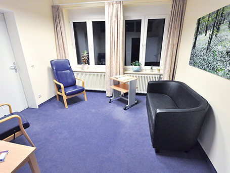 Die Renovierung des Zimmers ist aus Spendenmitteln des Fördervereins finanziert worden. Damit ist der Raum heimeliger und gemütlicher gestaltet worden. Gardinen, die Beleuchtung, Bilder, ein Phonogerät.